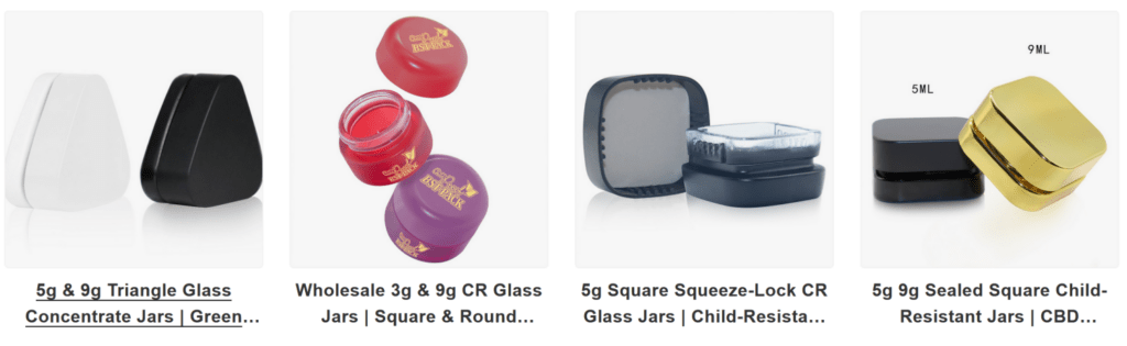 - Key Products: 3ml – 9ml Glass concentrate jars, custom branded airtight jars with silicone linings.