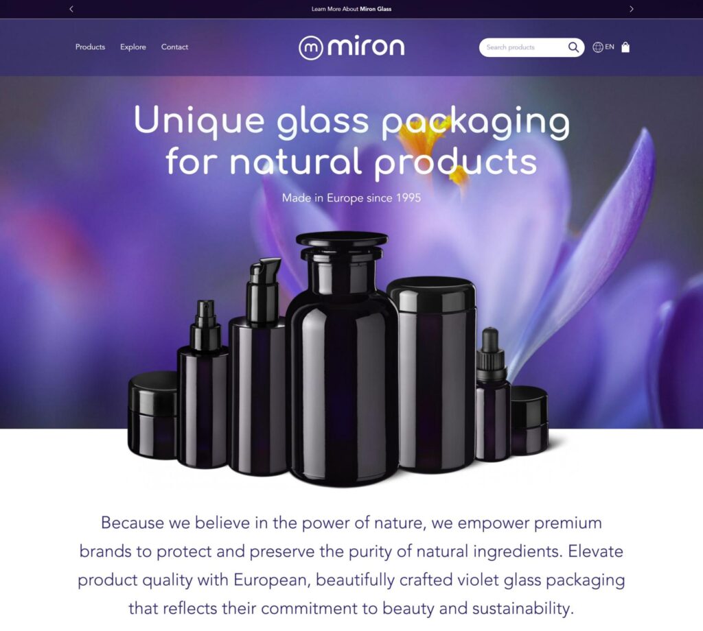 - Miron Violetglass produces and distributes a unique range of glass packaging. Our trademarked “biophotonic” violet glass is specially made for natural products in the beauty, personal health and food & drinks industries.