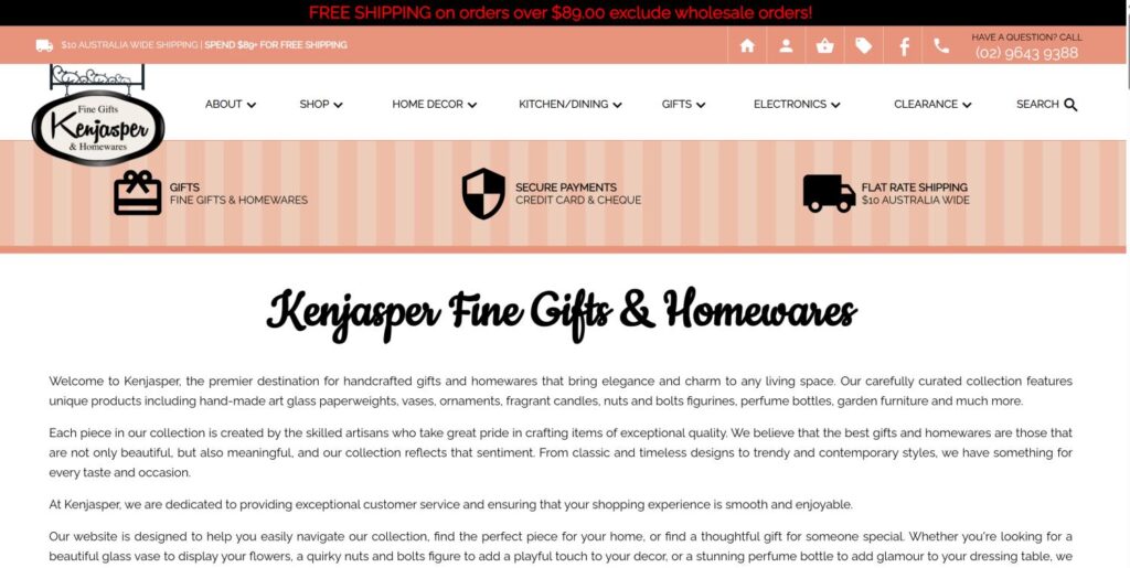- Welcome to Kenjasper, the premier destination for handcrafted gifts and homewares that bring elegance and charm to any living space. Our carefully curated collection features unique products including hand-made art glass paperweights, vases, ornaments, fragrant candles, nuts and bolts figurines, perfume bottles, garden furniture and much more.