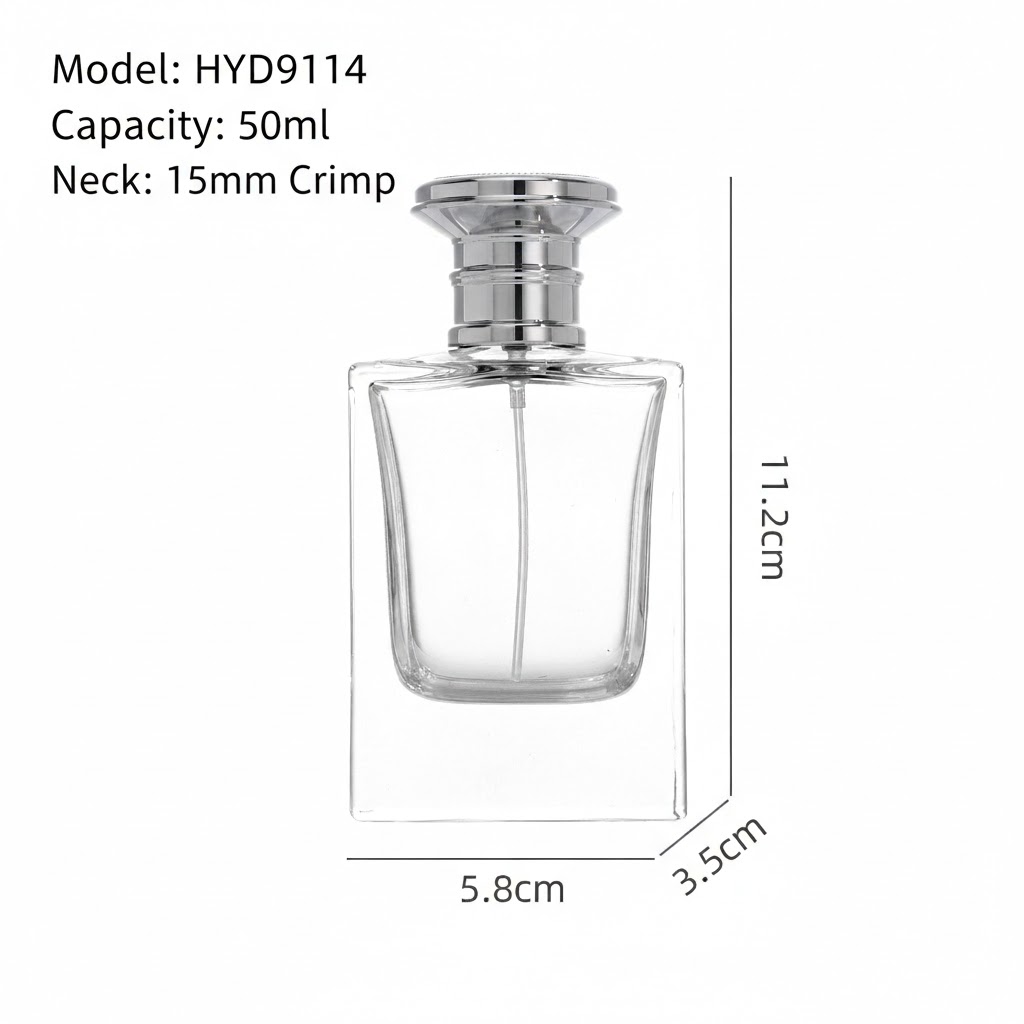 In the competitive fragrance market, the texture of your bottle directly determines your brand’s perceived value. As a specialized custom glass packaging manufacturer, we introduce the 50ml Flat Square Series (Model: HYD9114). With its crisp lines and superior flint glass clarity, this vessel is the top choice for niche fragrance houses and global OEM brands looking for a professional edge.
